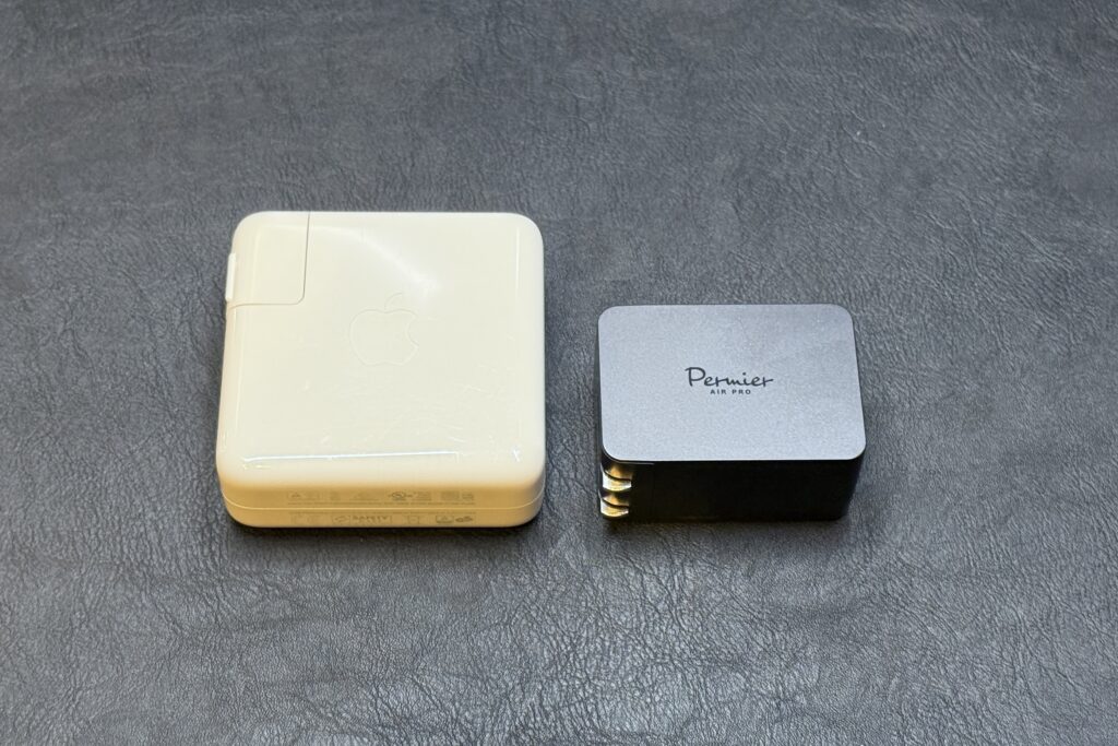 試しに、MacBook Air付属の67W Apple純正充電器と比べてみました。